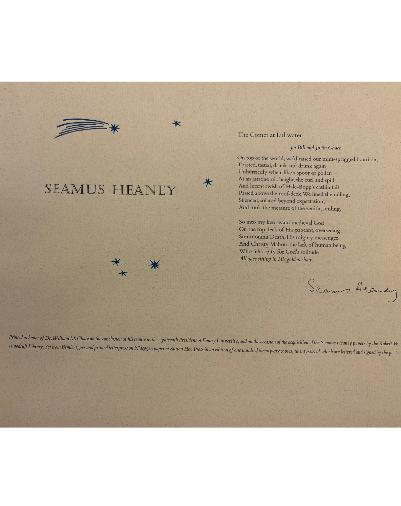 Title: The Comet at Lullwater-For Bill and JoAn Chase